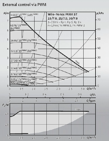 * έως 30 m2 ηλιακή συλλεκτική επιφάνεια με ροή High-flow: 0,7l/min ανά m2 συλλεκτική επιφάνεια και μανομετρικό ύψος Η: 5m